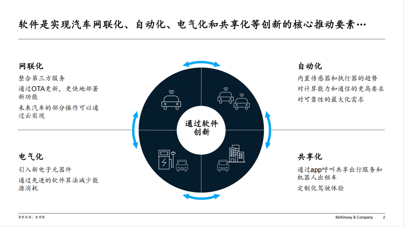 刚才大家提到软件驱动背后有很多大的行业趋势基础,2014、15年新四化开始爆棚,我们可以看到新四化背后的自动驾驶、车联网,这些无疑是软件作为底层逻辑支撑的,甚至是电动化。虽然电池更偏向硬件,但我们可以看到电池的管理、热管理、创新想法(例如,以后把电动汽车变成开内燃机一样的感觉),很多这样的场景模拟也是软件支持的。