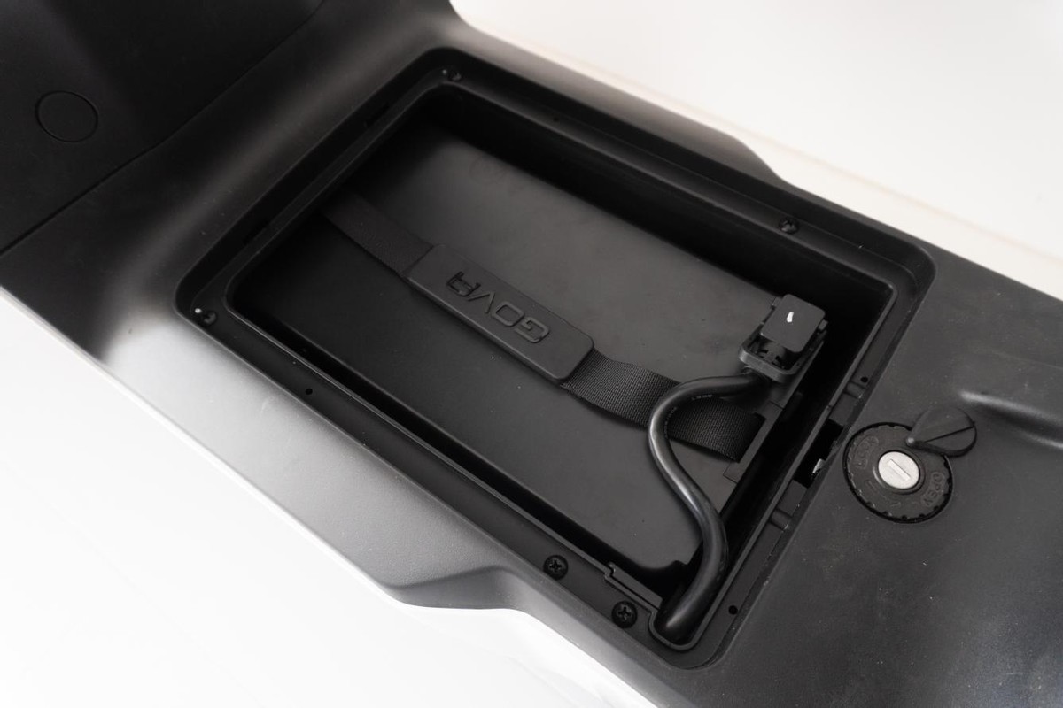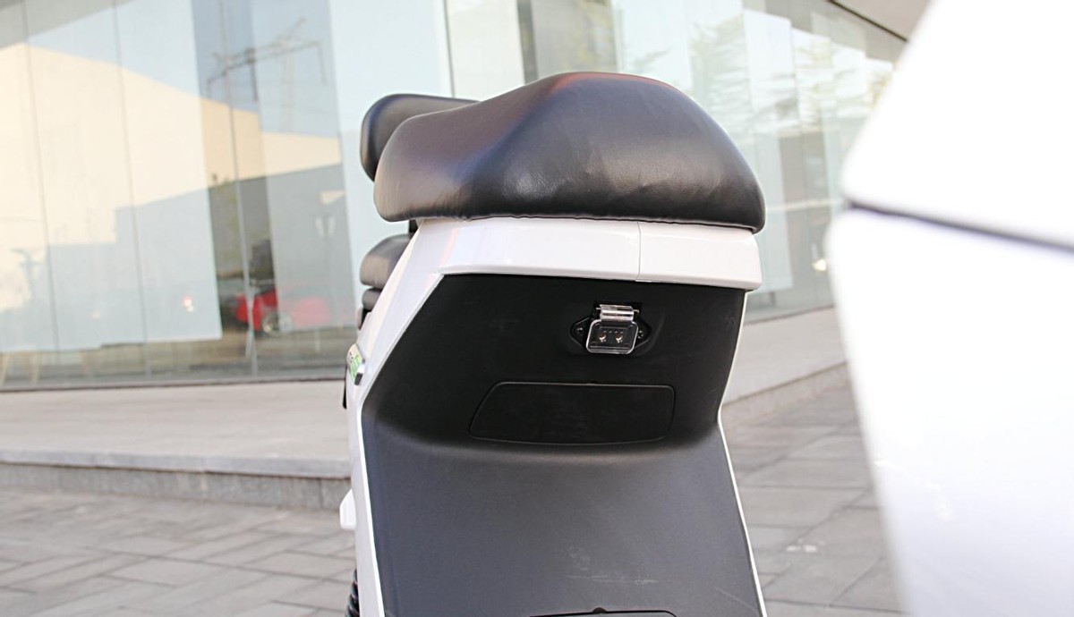 小牛电动GOVA F0的充电接口设置在座垫前端的下方,充电口上设置有透明的防护盖,既可防水又可防尘。