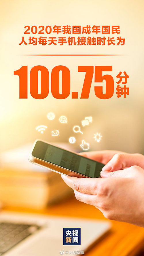 4月23日,第十八次全国国民阅读调查出炉。数据显示,从媒介接触时长来看,成年国民每天接触手机的时间最长。2020年我国成年国民每天使用手机100.75分钟,比2019年的100.41分钟增加了0.34分钟。