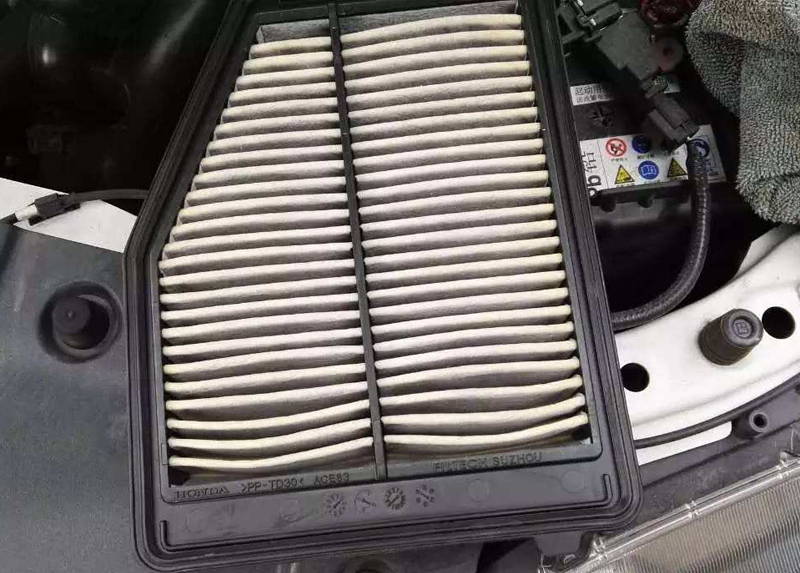 空气从车头进气口吸入,然后进入到空滤盒,空滤盒内装有空滤,因此能将空气里的灰尘颗粒拦截下来,完成过滤的空气继续进入到发动机内部。常规汽车空滤大多数都能有效过滤4微米级别的颗粒物(与医用一次性口罩相当),好一点的可以达到1~2微米的过滤级别。