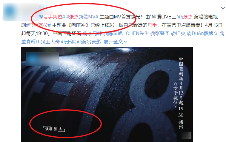 伴随着开播时间的将近,目前这部剧的也在自己的官博之下发布了《号手就位》的主题曲。“当顽强的小孩,放下稚嫩,身穿军装,用自己的热血去诠释青春”。该剧的主题曲是全能歌手张杰深情献唱,大家在视频的截图中就可以看到张杰身穿着黑色的西装,张杰唱出了火箭军的气魄,唱出了火箭男子的气概。