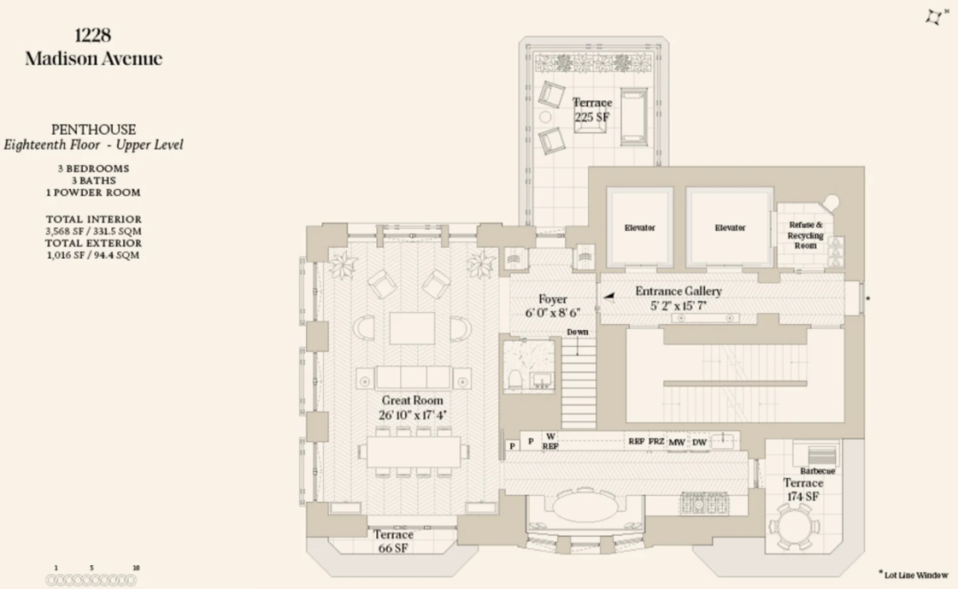 2 套顶层复式已售出,3房3卫的三层高复式 TRIPLEX PH ,面积 571㎡,售价 27,850,000 美元(约合人民币 1.8亿) ▽