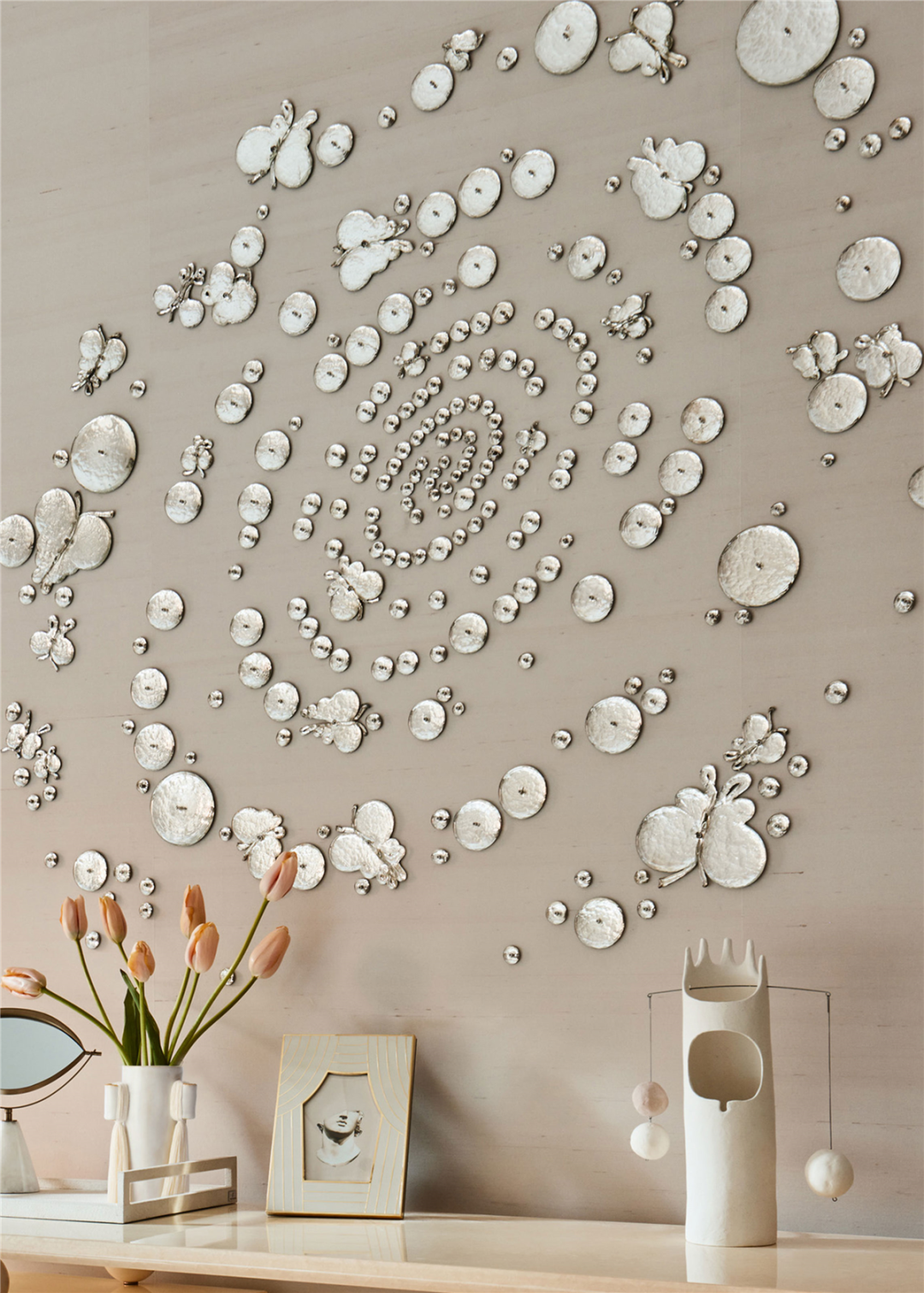 定制的绸缎灯具和手工羊毛地毯,配以格调统一的艺术品和雕塑,同时塑造出一种空灵的氛围。