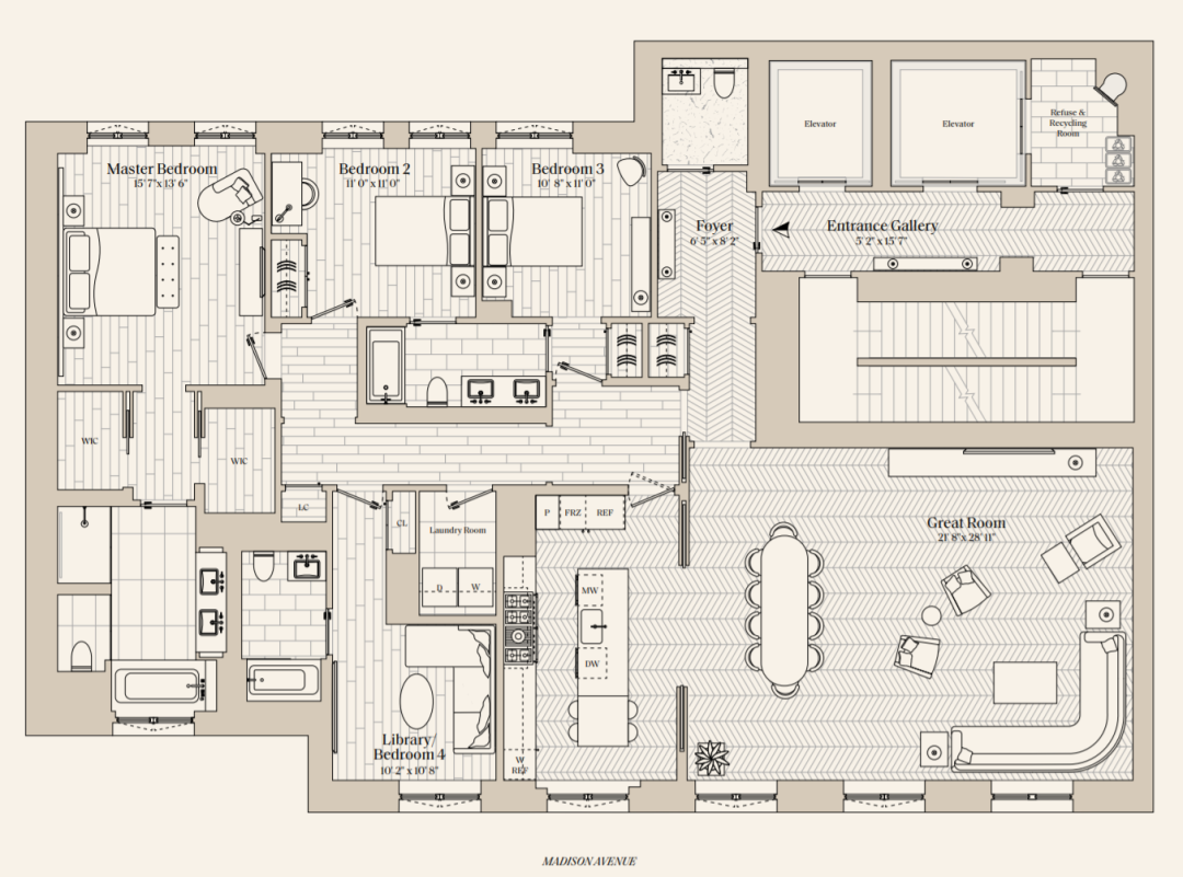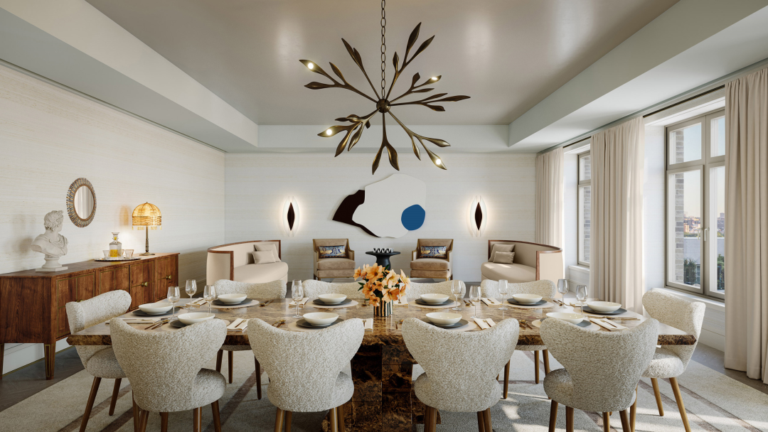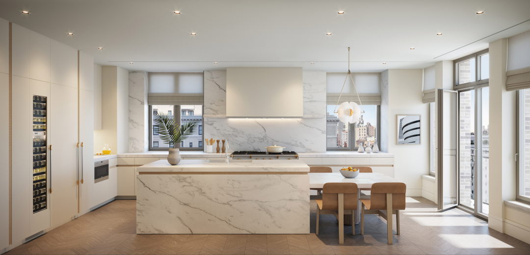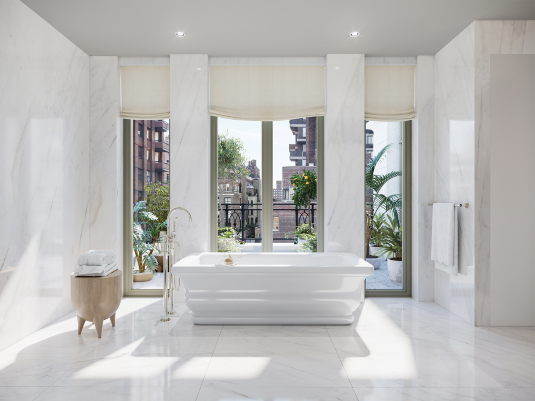 该项目包含 14 套全平层公寓和 2 套顶层复式。室内设计也全部由 Kelly Behun 负责,充分融合了麦迪逊大道优雅精致的气息。这也是她和 RAMSA 的首次合作。
