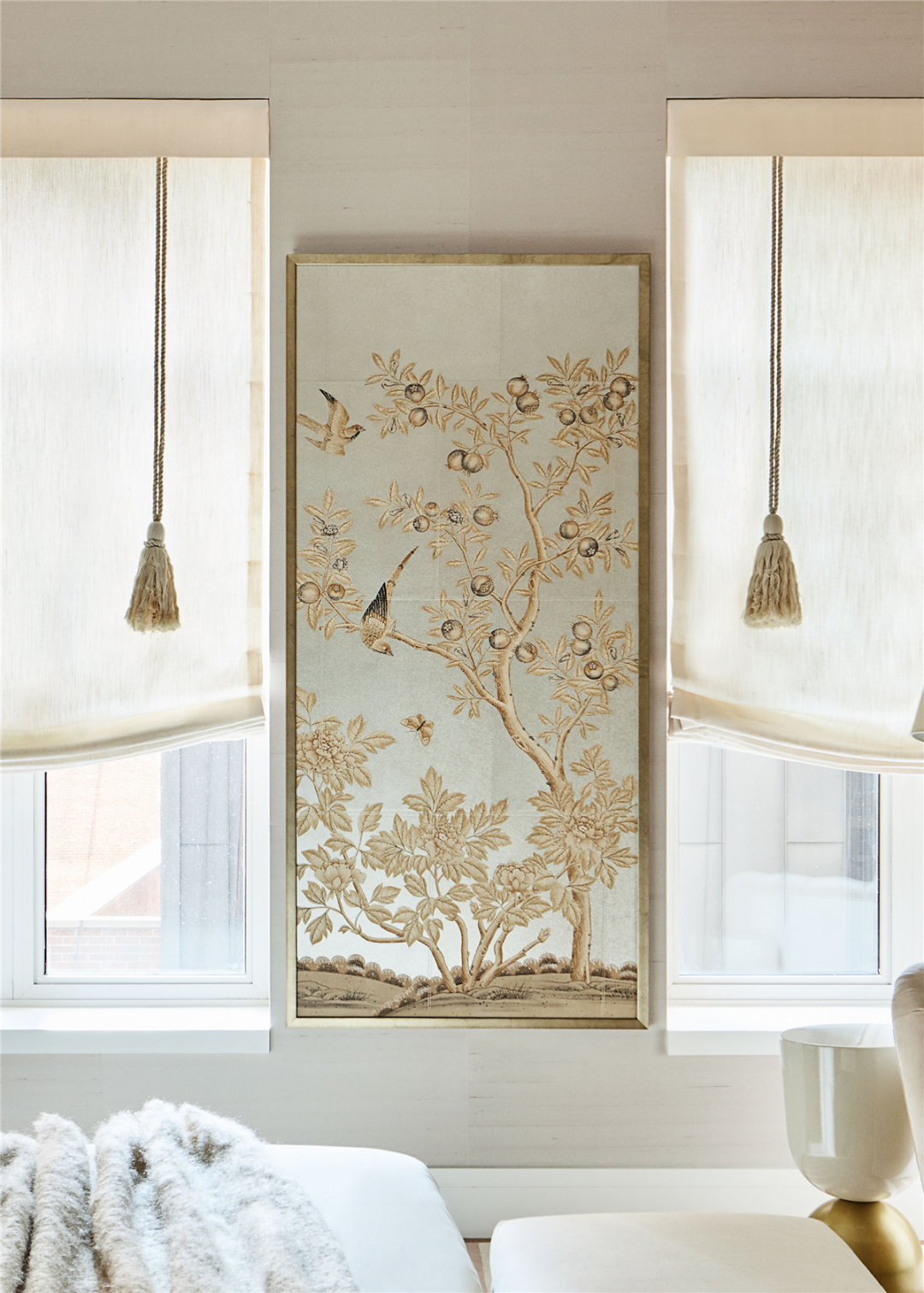 Gracie Studio 的《Sepia Garden》是完全用手工绘制在金属银色背板上的,是具有 18 世纪风格的艺术品。