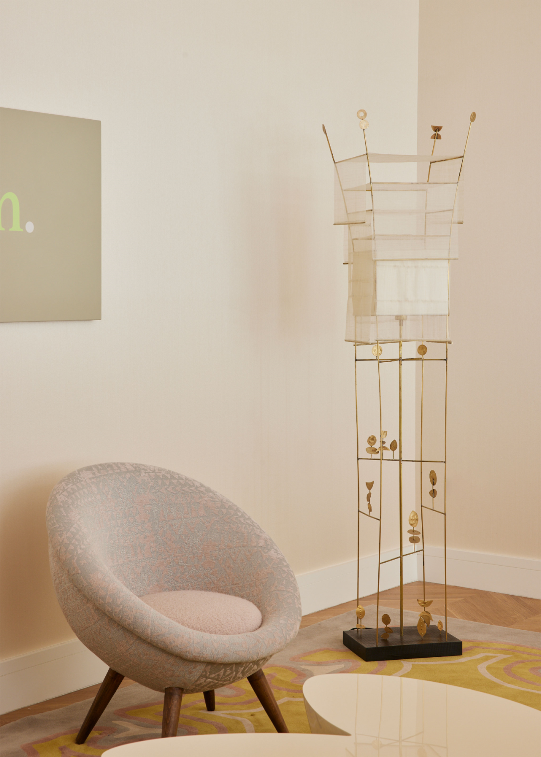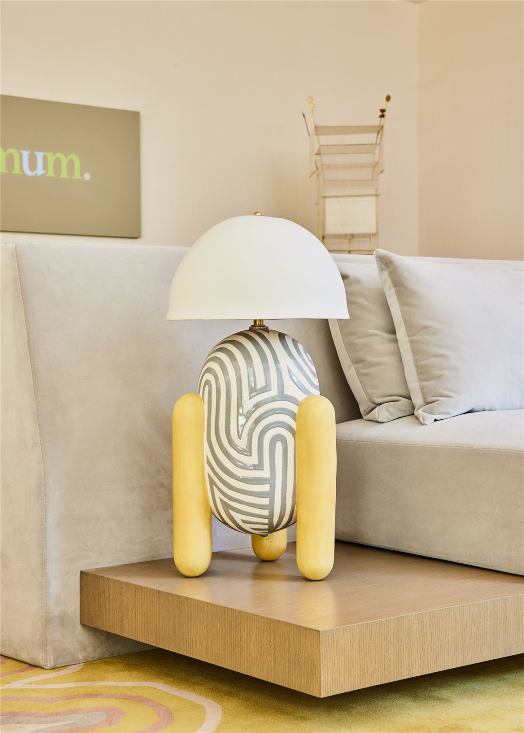 墙角的落地灯来自美国当代艺术家 Christopher Baker 的 F 雕塑系列,这件独特的手工作品大约完成于 2020年。
