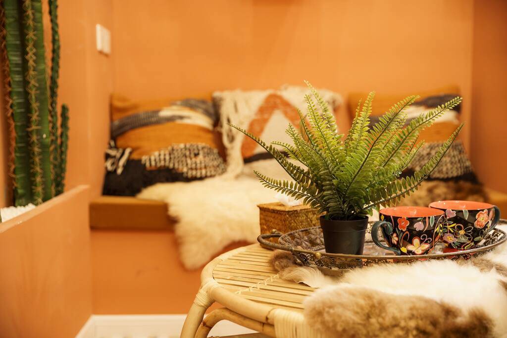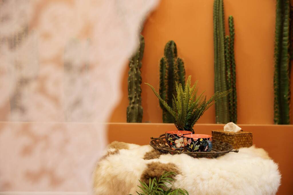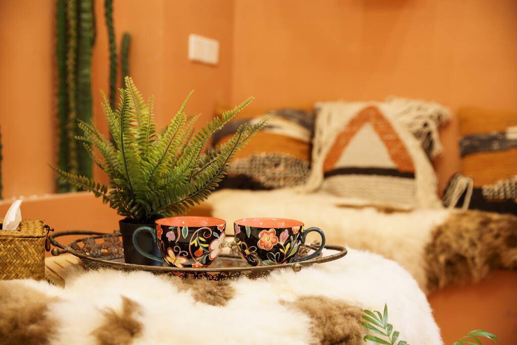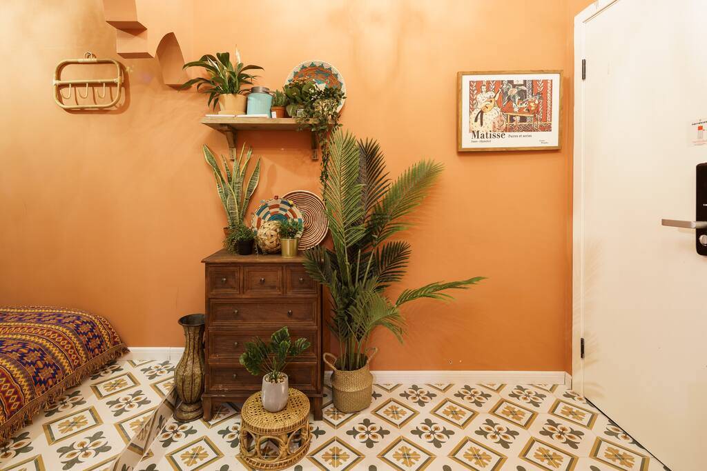 民宿的面积不是很大,但是当你走进民宿,整个橘黄色的空间,在加上摩洛哥风格的地毯,绿色的仙人掌和其它植物,让人感觉到很舒适,很温馨,民宿房间里面安装了巨大的沙漠仙人掌,有一人多高,非常有趣,适合拍照。