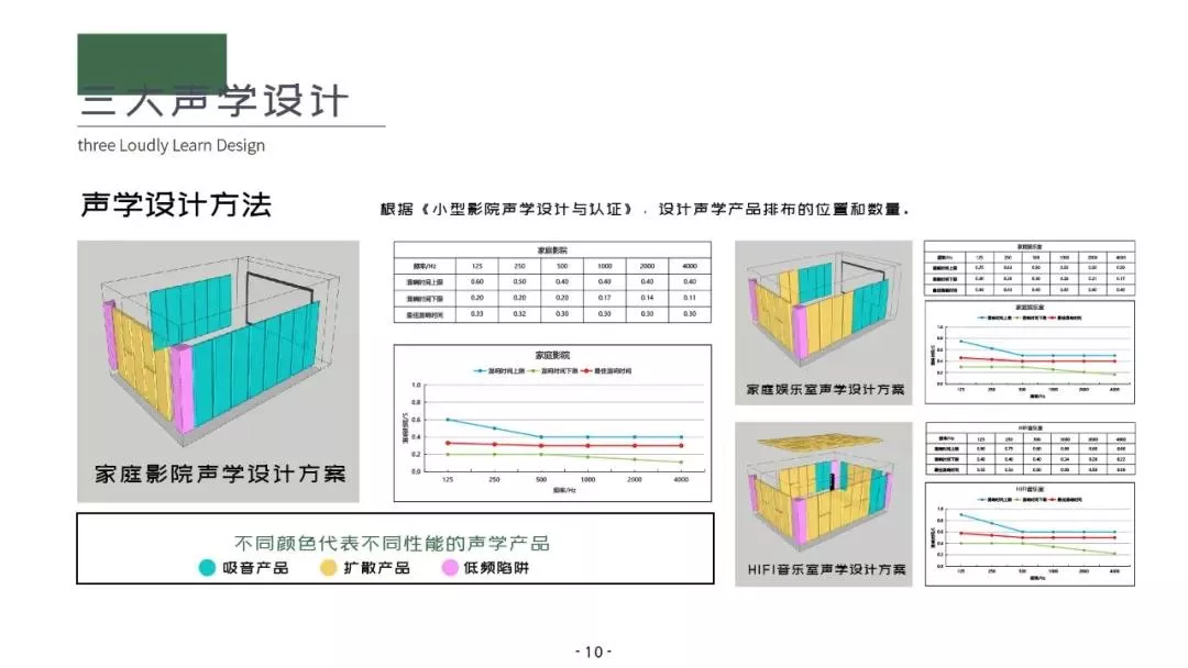 不同颜色代表不同性能的声学产品