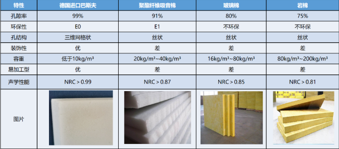 同吸音材料对比