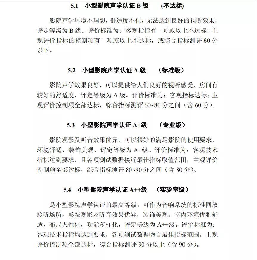 小型影院声学等级认证(依据《小型影院声学设计与认证标准》)