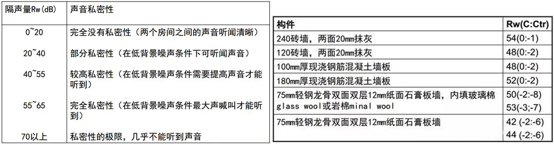 如,隔声量为50dB的20㎡墙上开了隔声量为20dB的2㎡的门,则复合墙体的隔声量降低为30dB。