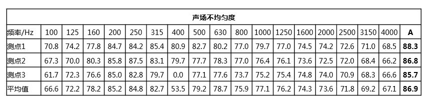 说明:安装了声学扩散产品的房间的声场均匀度极好,最大值与最小值差值在0.5dB。
