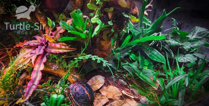 黄缘龟饲养环境中的活动区域主要是其龟进食、排泄、交配、玩耍嬉戏打闹的地方。在这个饲养区域中需要种植一些低矮植物,灌木,这个主要是给黄缘龟一个遮荫区域,同时生态饲养植物也能很好的消化排泄物,也是一举两得,选用植物以固根类的厥类植物不容易被黄缘闭壳龟破坏为原则,但是植物的分叉处又需要高于黄缘龟腹甲的长度,否则调皮的黄缘龟很有可能会踩到分叉上而又跨越不出植物而卡在植物中间,所以在饲养环境中的植物最好种在花盆里。这样给灌木浇水时也更容易,只需要浇到花盆处就可以了。