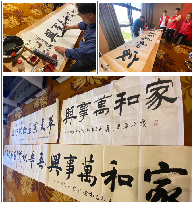 期间,更有国家级书法大师刘名权老师现身会场,在现场为大家带来了“家和万事兴”等的书法作品!真是惊喜不断!