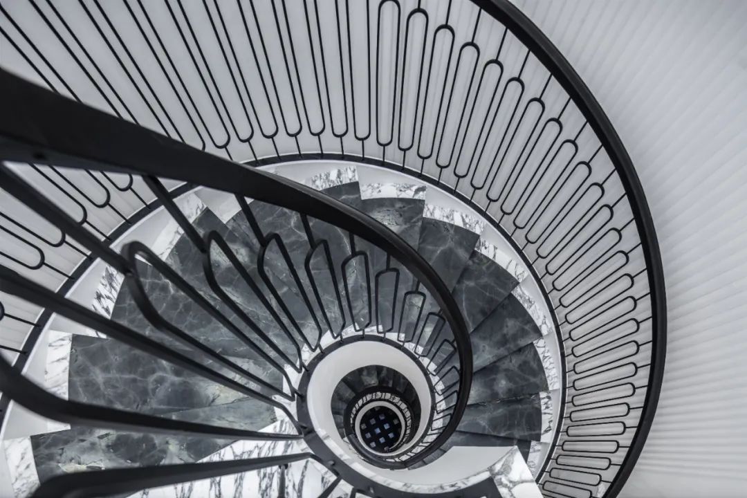 而来到内里,空间设计上复刻了不少上海老洋房的神韵,最有味道的还属这个旋梯: