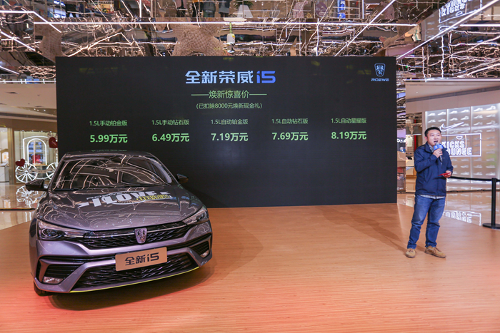 全新i5自预售开启后,订单不断,来自客户和媒体平台的赞誉众多。上市发布会现场,上汽荣威西北大区销售总监李明揭晓了全新i5的上市车型及价格,作为国潮代表的车企典范,上汽荣威依旧秉承回馈客户的理念,全新i5一经上市就先给出了优惠,并推出了5大上市焕新豪礼。