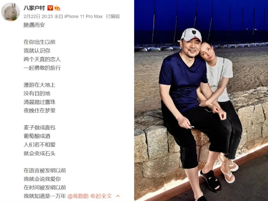 再看看蒋勤勤的微博,又被陈建斌十五周年的爱情诗集秀了一脸。
