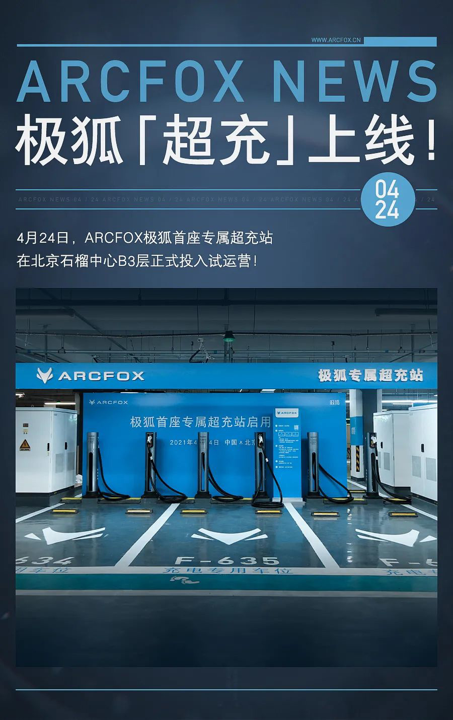 IT之家 4 月 24 日消息 根据极狐官方消息,ARCFOX 极狐首座专属超充站在北京石榴中心 B3 层正式投入运营。这个超充站共设置有 12 根充电桩,单桩最大功率可达 180kW,达到当前国标要求的最大充电能力。