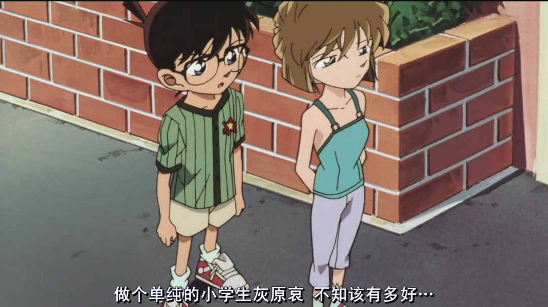 2000年推出的《瞳孔中的暗杀者》,灰原哀对柯南说,希望失忆的是自己而不是小兰,这样就可以忘记姐姐被害的往事、与黑暗组织的纠缠,做个单纯的小学生,一直与柯南“维持现在这样”。