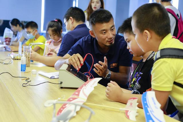 据介绍,为了能让孩子们将学到的航空知识及时地学以致用,基地开设了手工DIY的课程。通过手工课程,大家可以了解到发动机、固定翼、小翼、轮子等不同航空部件的构造。同时,基地还引进国际飞行教练,现场带领孩子们体验飞行驾驶的乐趣。在模拟驾驶舱内,孩子们通过大屏幕学习操作飞机的起飞和降落,收获第一视角的难忘体验。