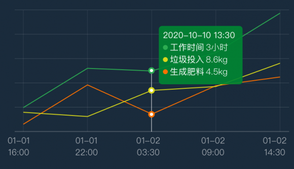 该平台支持手机APP及小程序远程操作,可满足终端用户自主管理需求,能够带来更加高效的设备运行。不仅如此,生成的餐厨垃圾处理数据可为政府等部门提供监管接口,为监控碳减排工作的成效提供依据,实现更加有效的环保处理方式以及可视化的城市环境监测。