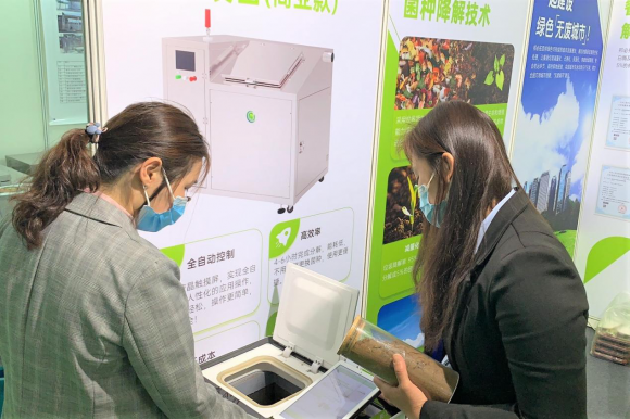 在第22届环博会上,以将餐厨垃圾资源化、减量化、无害化为处理目标的邦必拓(深圳)科技有限公司,向用户提供了一种环保型餐厨垃圾处理办法,通过独家研发的菌种,将餐厨垃圾分解成有机肥,达到减少污染、降低碳排放的目的,为餐厨垃圾处理提供智慧解决方案。