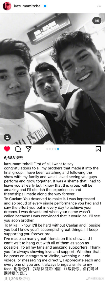 《创造营》成团夜结束之后,和马还晒出了和米卡、庆怜的合影,先是祝贺米卡出道,然后对于庆怜没出道表示很震惊:“对你每次的表演都感到骄傲,我坚信你会成团的”。