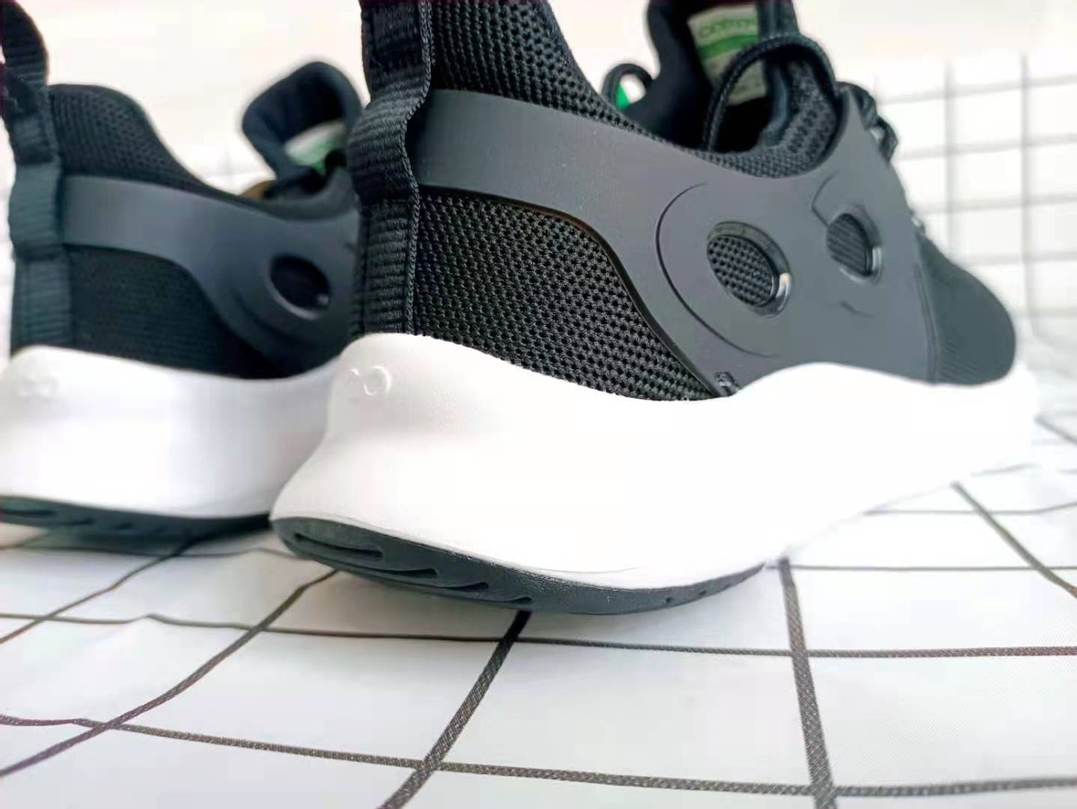 就外形而言,整个鞋面采用了一体微距飞织技术,袜套式鞋身设计,鞋舌鞋身一体成型,在充分考虑了国人脚型的基础上,更加贴合,脚背包裹感更强;3D散热鞋面遍布无数透气孔,时尚又透气。因为这款产品主打走跑,所以设计上更加注重舒适、透气、一脚蹬。