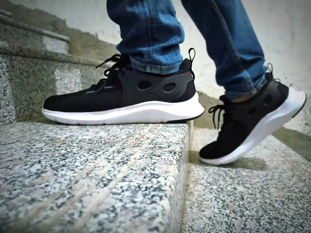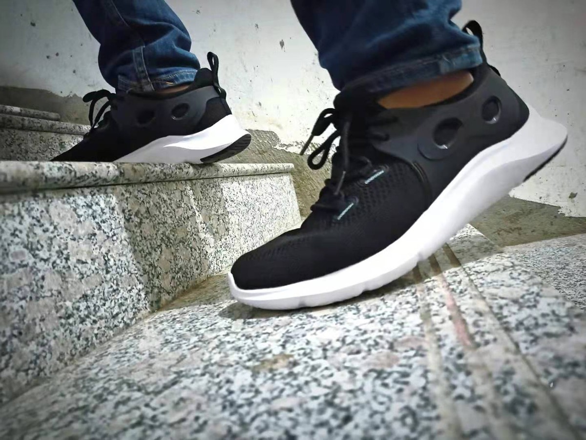鞋子重量控制得很不错,加上具有双重减震效果的鞋底和鞋垫,穿在脚上软绵绵、轻飘飘的。因为鞋子表面有10000+透气孔,对于我这种特别爱出脚汗的人来说非常棒,走路运动之后的热量及时散发,穿了一天的鞋底也能保持干燥,脱鞋后的脚也没那么臭了。