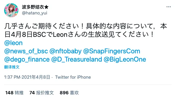 在 NFT 的热潮来临之际,波多野结衣亲自在 ins 上以视频的形式宣布自己将在BSC(币安智能链)上发表自己的 NFT 写真。