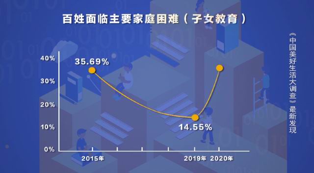 近日,在央视财经频道发布的《中国美好生活大调查(2020-2021)》中,“子女教育”问题在家庭面临最困难的问题中名列第三。