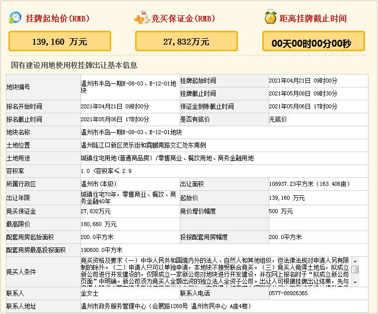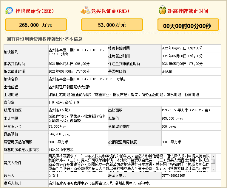 瓯江口挂牌两地块