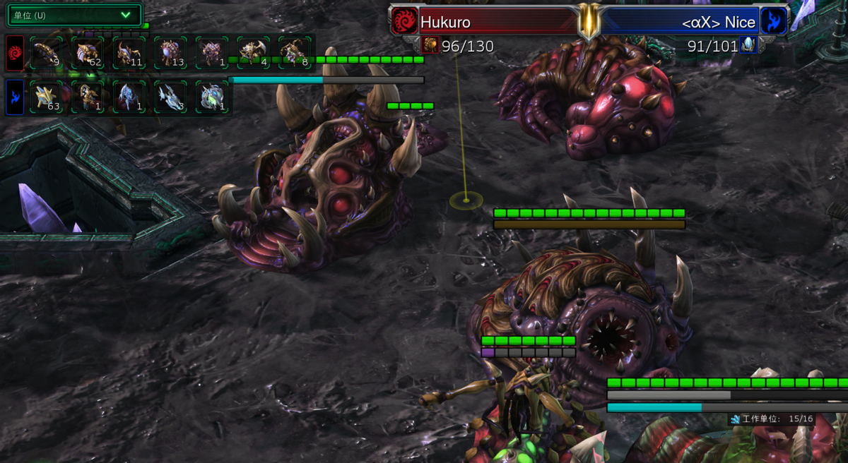 随后部队转移至神族主基地附近,以与虚空保持1:1的比例变异火蟑螂,进攻初期以切断VS产能为主要目的,尽量避免和过载电池下的部队正面硬刚,在大多数情况下,这套战术都可以一波捅穿对手。