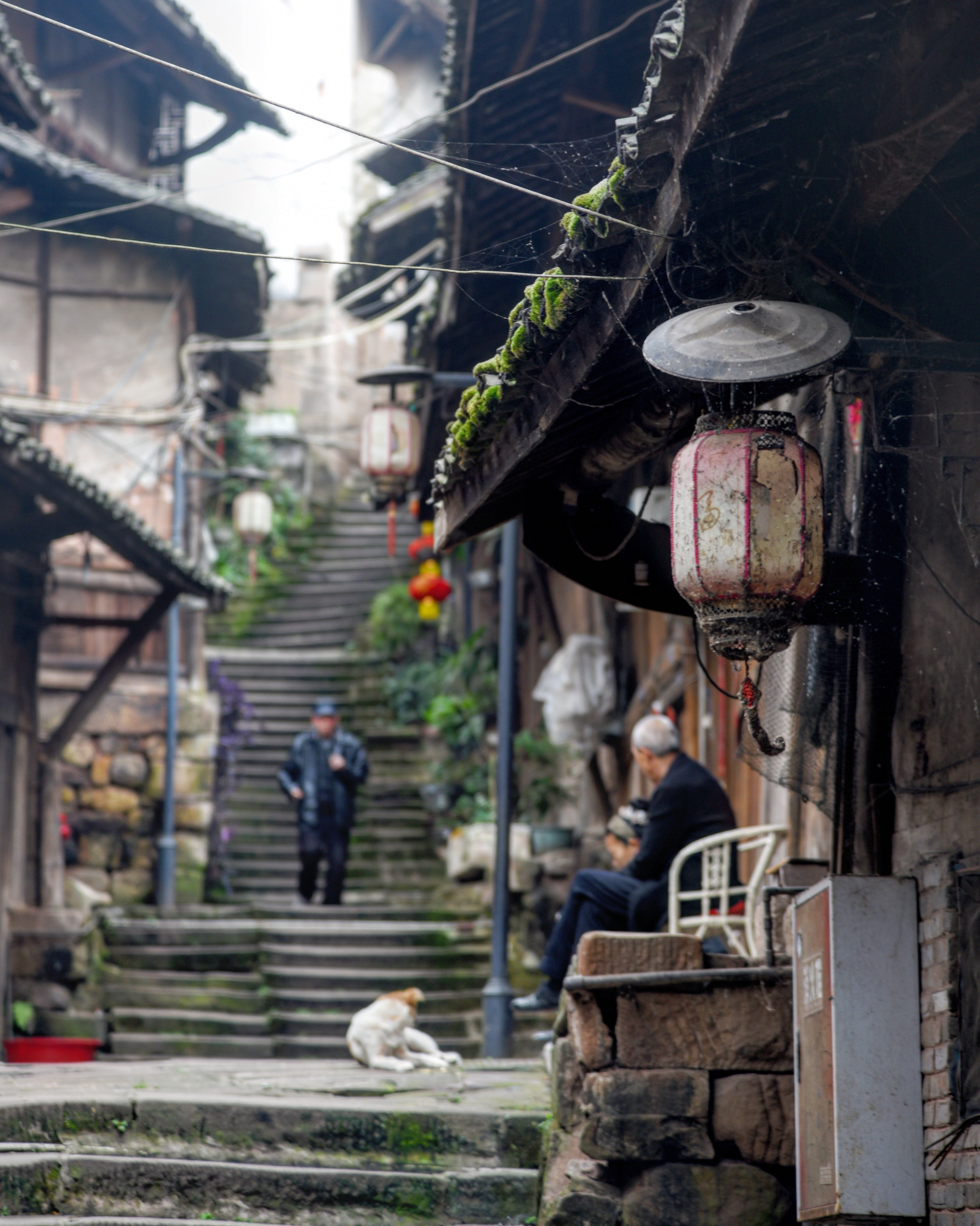 古镇不收取门票,从观景台上下来便可以直接进镇,与明清时期的热闹与喧嚣不符,倒是与在观景台上看到的宁静别无二致。古镇里面没有灯红酒绿的酒吧,也没有兜售义乌进货来的商贩,甚至游人都不算多,丝毫没有商业气息,这里大多都是当地世世代代生活在这里的居民,即便偶有几个百货店,也多数是当地居民经营的,房屋外面还能看到一些老人坐在街头,十分具有生活气息。