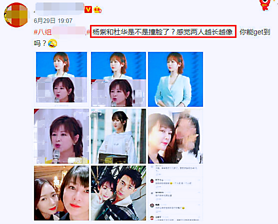 从去年6月底开始,就有网友感慨杜华的脸在岁月中进化得和杨紫越来越像(容祖儿可以像吴宣仪的话,杜华当然也可以像杨紫,我真是逻辑满分)。