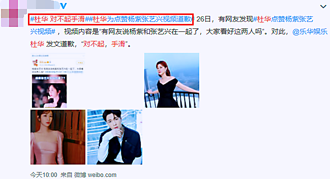 谁知,4月24日杜华的一个比心,直接把杨紫以及前EXO成员、顶流唱跳爱豆张艺兴一起拽上了话题榜。