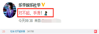 杜华的道歉+撤销虽到但迟,直到26日上午9点38分,她才以一句简单的“对不起、手滑!”作出表态。