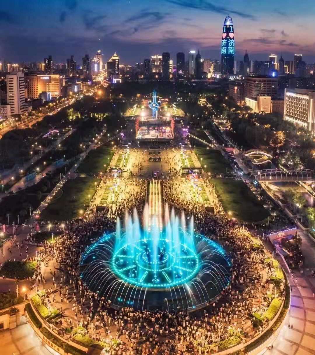 想把济南的风光尽收眼底,那一定要打卡济南绿地普利中心。它建筑高度303米,作为济南市曾经的“第一高”,见证了济南的湖光山色,也点亮了济南的夜色。登上绿地中心第60层,可远眺千佛山,近观大明湖、五龙潭、趵突泉。极目远眺,济南的山水错落,各色美景尽收眼底。华灯初上,从大明湖畔远眺,绿地普利中心就如同暗夜中的火炬,无声地倾诉着对济南的赤诚热爱,描绘出最绚丽的暮色。