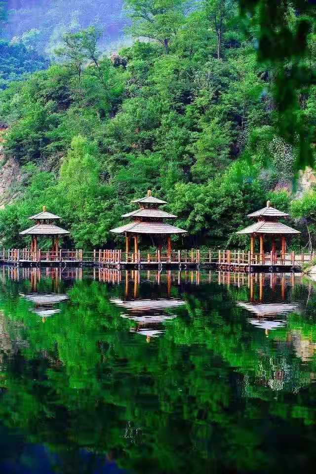 远远望去,形态各异、恣意奔腾的瀑布群,有的宛如飞升的蛟龙,有的沉静娟秀风情万种。整个瀑布群蕴藏着万千种不同的气质,泉涌纷飞、灵动洒脱。沿着十里栈道拾级而上,逡巡在郁郁葱葱、鸟鸣莺啼的林间,极目远眺,身后是云山雾罩、层峦叠嶂的深谷,而一座座深潭,更是像墨绿的翡翠,从山顶到山脚,把美景层层倒影堆叠。