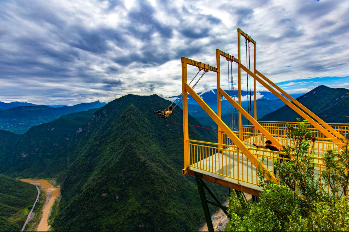 悬崖秋千,网红秋千位于连天栈道观景区,秋千分为三个不同高度,距谷底最高高度达到900米,惊险刺激,根据自己的承受力选择高度游玩,建议在小伙伴们一定要挑战一下,在荡出去那瞬间,释放自己,释放压力。