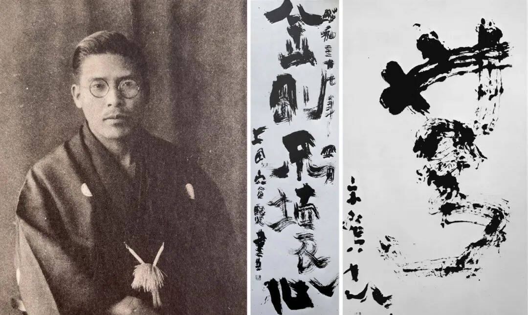 上田桑鸠像及其前卫书法作品