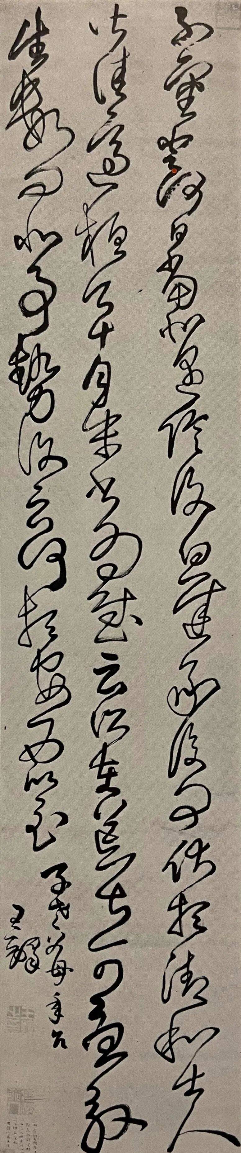 中国书法和日本书法渊源久远,自唐以来收藏中国书法墨迹的风潮至近代不息。如村上三岛、青山杉雨等日本大收藏家,纷纷到中国追寻历代名人墨迹,带回日本研究学习。而尤其又对王铎书法情有独钟,在日本书坛甚至有“后王胜前王”的说法。村上三岛所编《王铎の书法》汇集日本收藏家诸多王铎名作、佳作,影响深远。而此件王铎赠王汉《草书五律卷》,同样来自日本著名书道家、收藏家上田桑鸠。