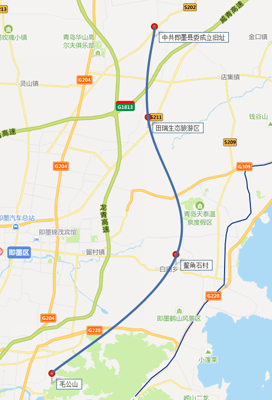 推荐线路:毛公山——鳌角石村——田瑞生态旅游区——中共即墨县委成立旧址