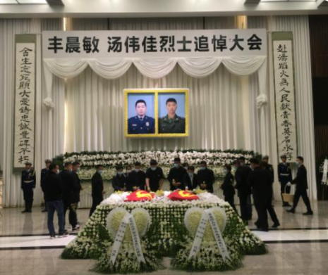 4月27日上午,韦晨敏、汤伟佳烈士追悼会在上海龙华殡仪馆举行。