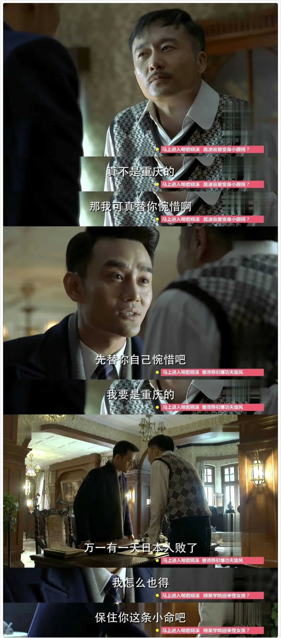 事实上,乱世之中,大家各有选择。有的人像明家姐弟一样有自己的信仰,并为此奋斗不止甚至献出生命,也有人像梁仲春一样想要做个不倒翁。