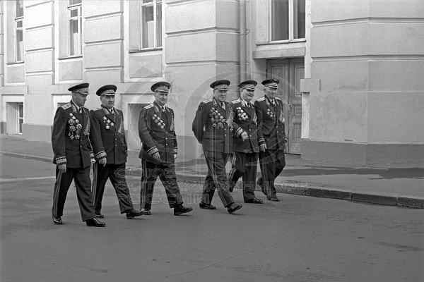1964年5月1日罗科索夫斯基、崔可夫、索科洛夫斯基、扎哈罗夫、科涅夫和韦尔希宁在克里姆林宫