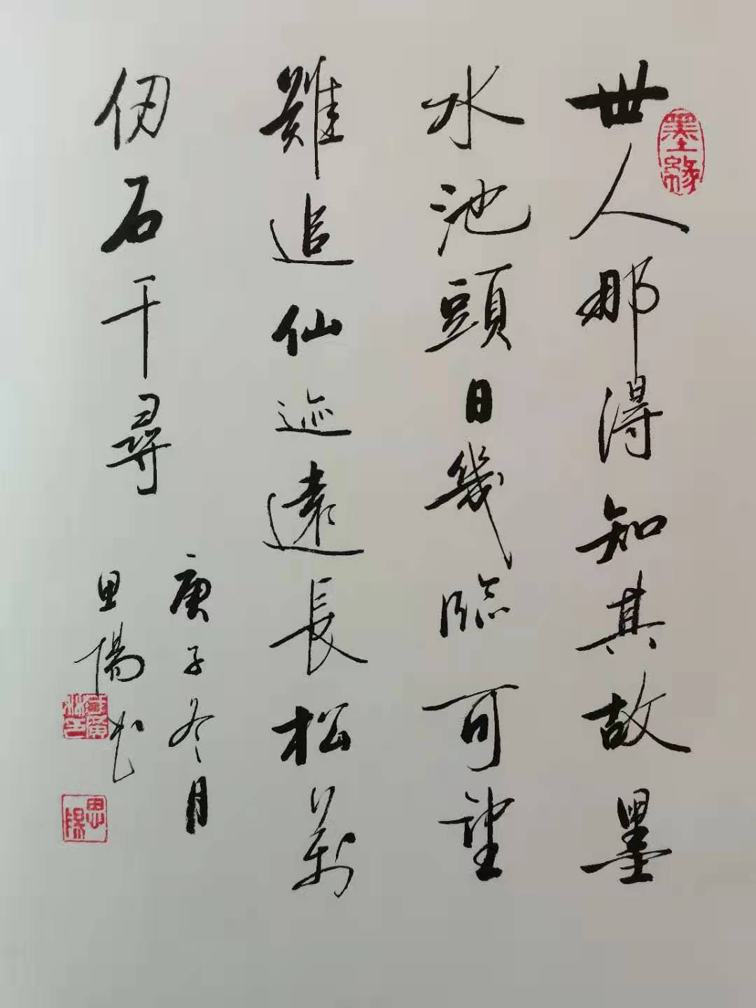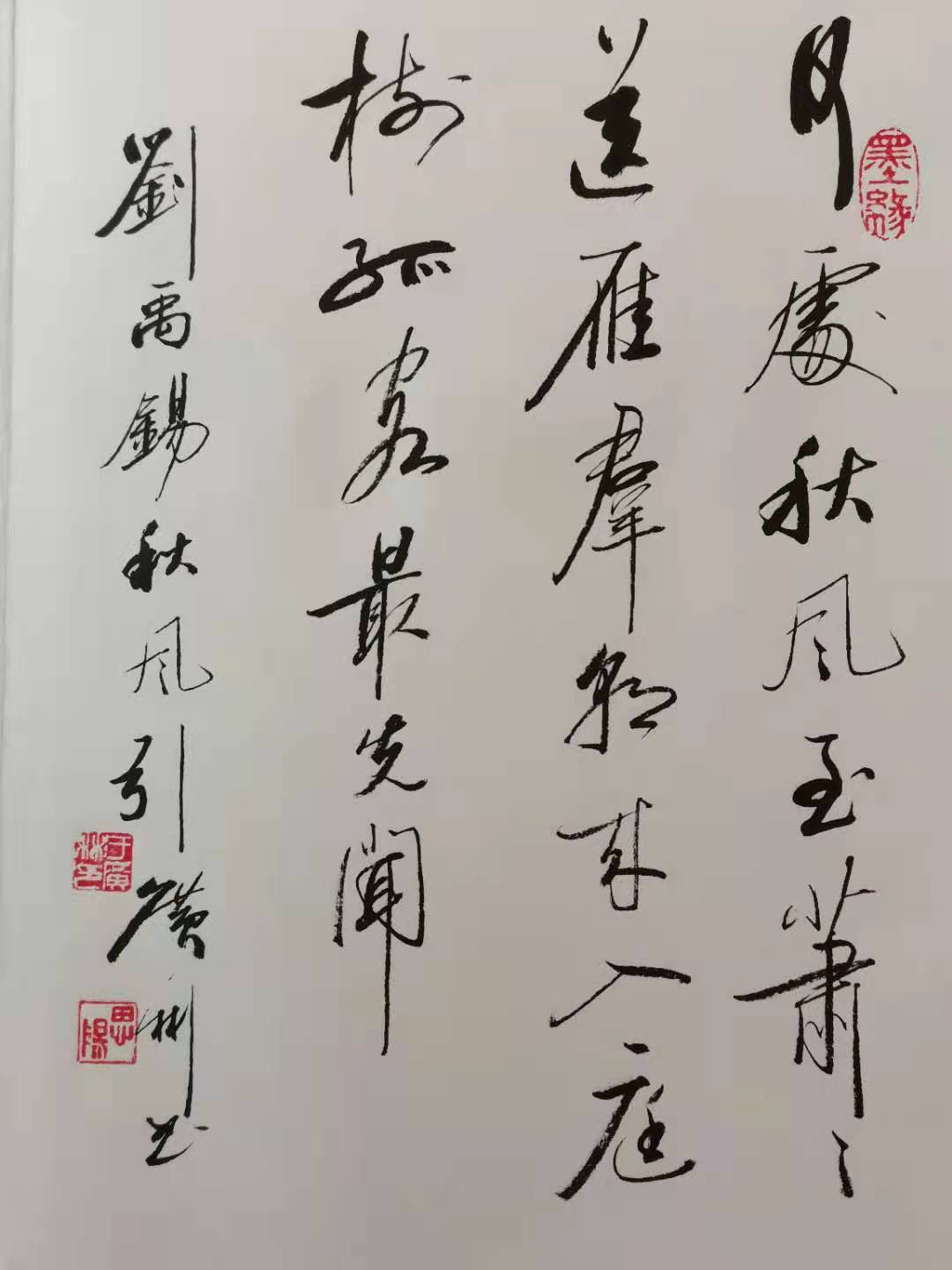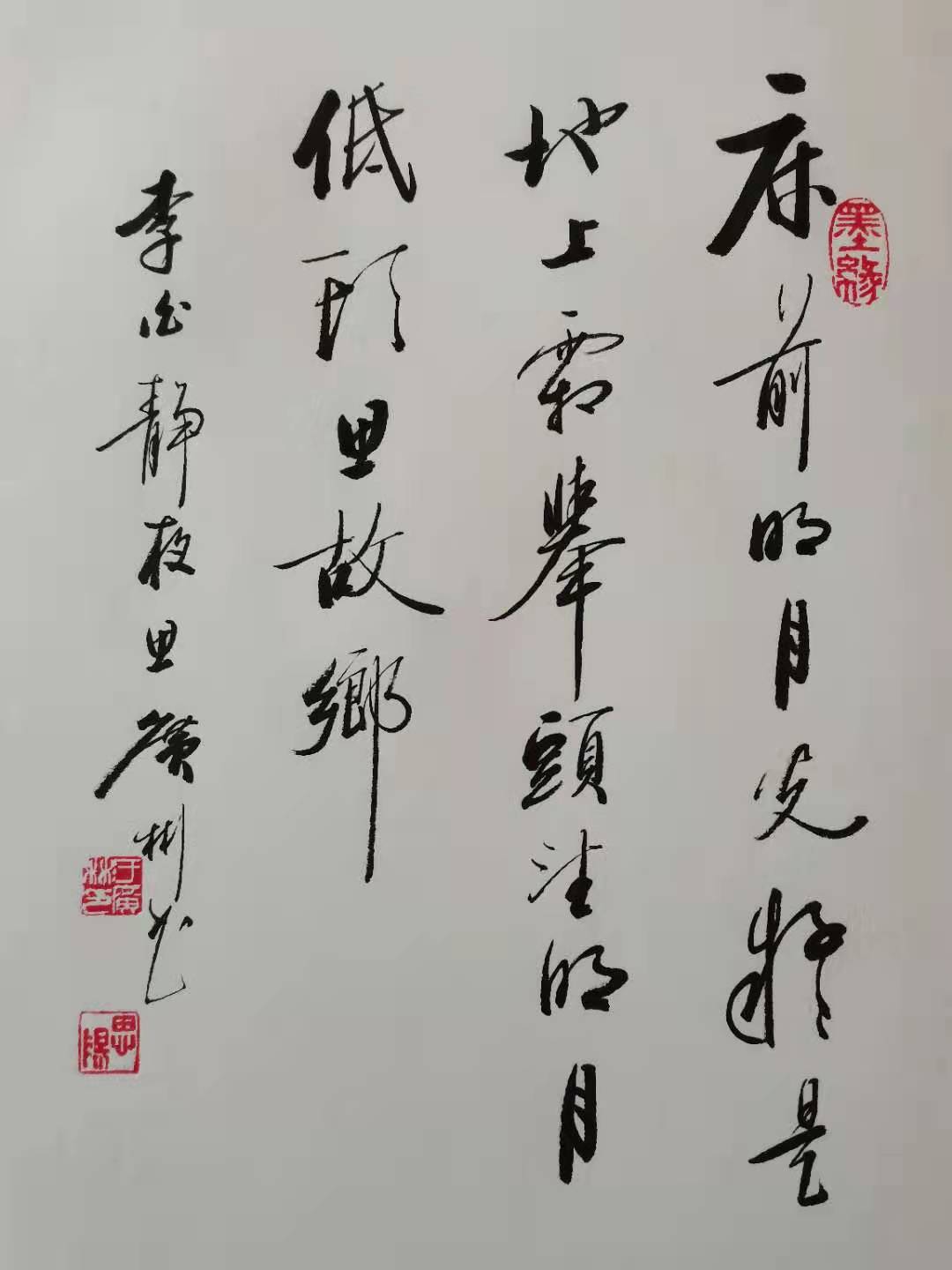 近来笔者看到于广彬的一些行书书法新作,让我眼前一亮。几年的时间,他的作品从用笔、结构、气韵、章法都有了很大的变化,他丰厚成熟了。读他的作品气脉纯正,笔法干净利落,沉稳朴厚中有灵动,内敛圆融中又不失锋芒。尤其几张行草书,飞动翻转的笔法,行云流水般的气韵和节奏,让我看到他丰富的内心情感和书法创作的驾驭能力,他是个有思想的创作者。多年的刻苦学习,让他打下了一个非常扎实的基础,从行政村任书记到河南书画院进修拜张海为师,后来又跟从了许多老师学习。但在创作中始终存有自我,不受流行时风的影响,作品中也没有浮躁之气。在其扎实的笔法中,让我看到了他潜在的能量;从笔墨结构、线条章法等细节,已初见独特创作的端倪;而且在创作中体现的现代性,又让笔者看到他能紧跟时代。虽然我们平时联络并不多,但我已从这次书法作品中看到了他平日的坚持不懈、踏踏实实、从容不迫的生活学习状态,取得的这些成绩肯定是必然的结果。他的书风不是第一眼看去让人心潮澎湃、激动不已的,而是那种能让你放松下来细细品读的类型。在艺术创作上,他也不是具有爆发力类型的那种,但绝对是有后劲的。他的天赋、悟性和智慧是能在书法艺术中有所作为的。
