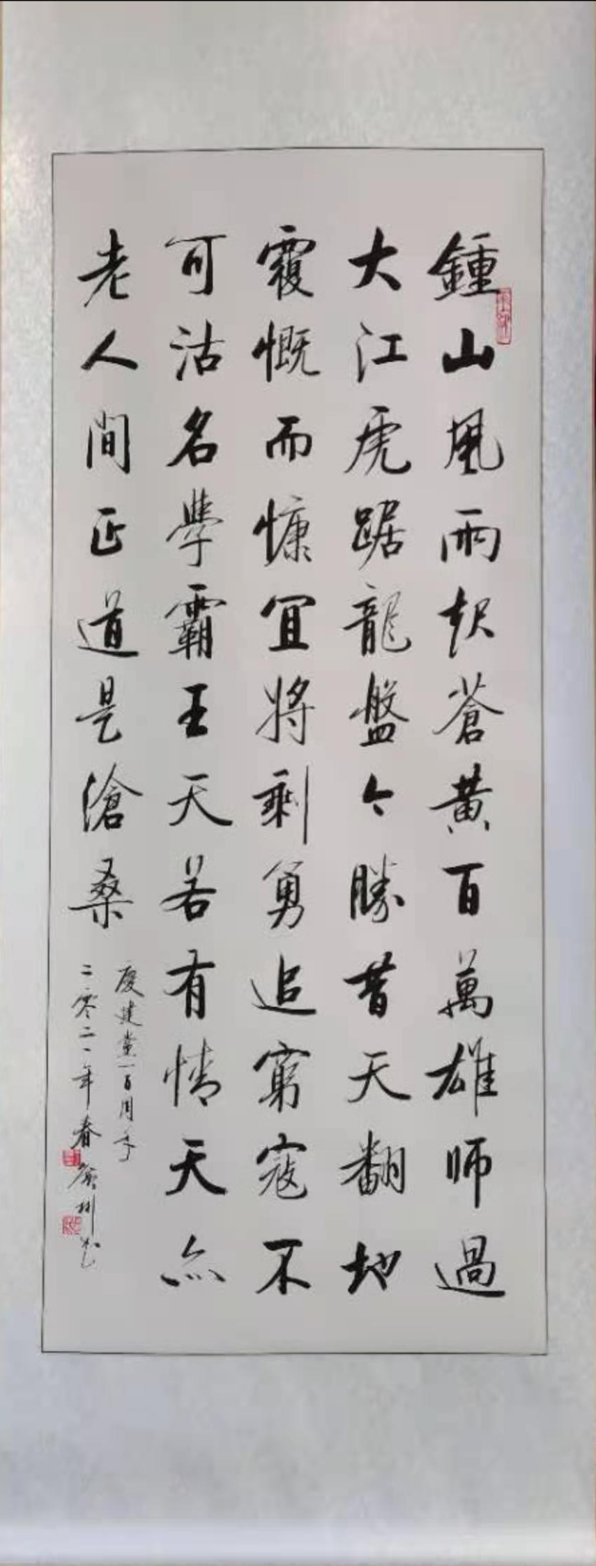 数十年来于广彬对启功先生书法艺术勤奋刻苦,孜孜不倦的倾心研究。对启功先生的书法艺术,从文字学基础到工具材料、书法的形式构成、书法教育思想、书法艺术赏析、书法艺术成就等各方面进行了深入细致的学习,让于广彬的书法创作继承了启功先生清雅、平和、秀劲的风格。点划之间,尺幅之内,书卷气颇浓,真恍惚间看到了启功先生的真迹一样,可谓得其形,得其气,得其神,有形神兼备、气韵生动之态。在心追手摹启功先生遗风之际,他又融入了自己的理解和情思,透露出一股青春般的气息。其中,于广彬参加“纪念老八路张万志诞辰90周年·全国书画名家精品展进高校”活动的丈二匹大作《将进酒》,他将李白的诗词与书法完美合一,以启功体创作形式美妙的文字更是被无数的专家学者赞赏。