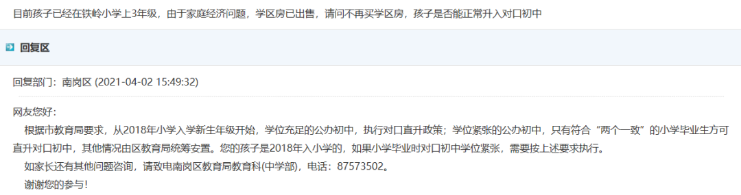 南岗区教育回复: