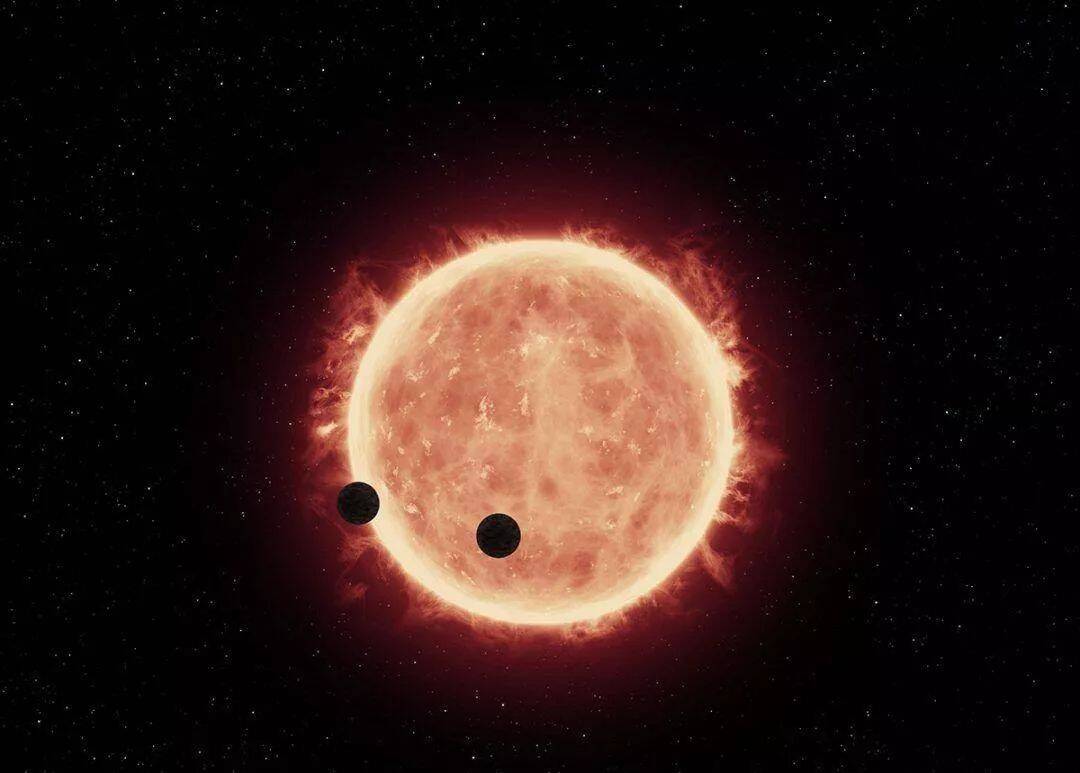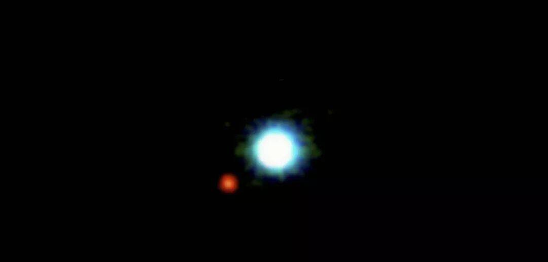 其中红点是这颗行星,中间的白点是一颗棕矮星,它是一颗已经死亡的恒星。